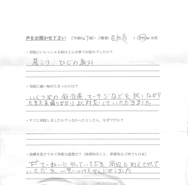 肩こり・肘の痛みがあった40代男性